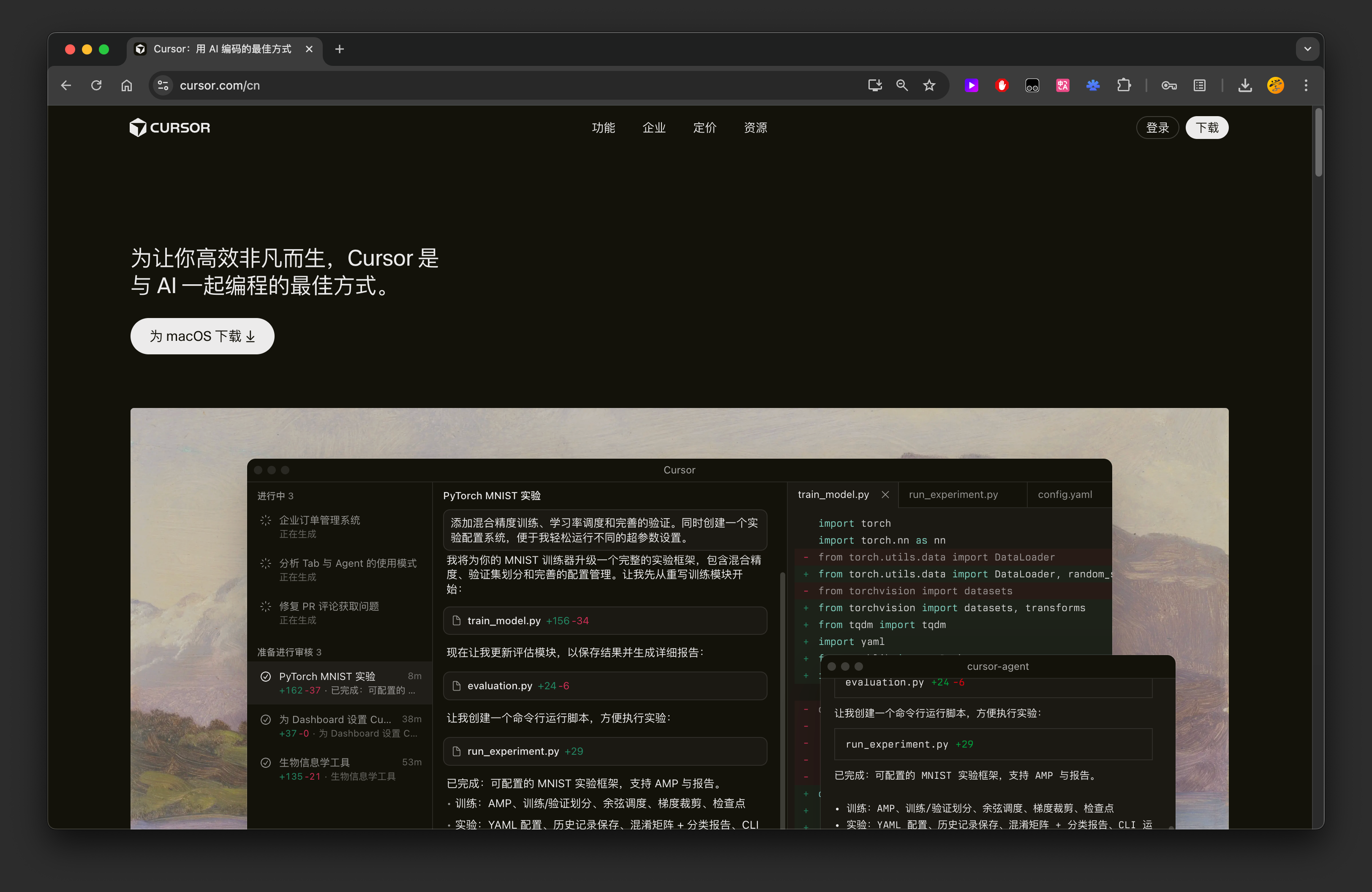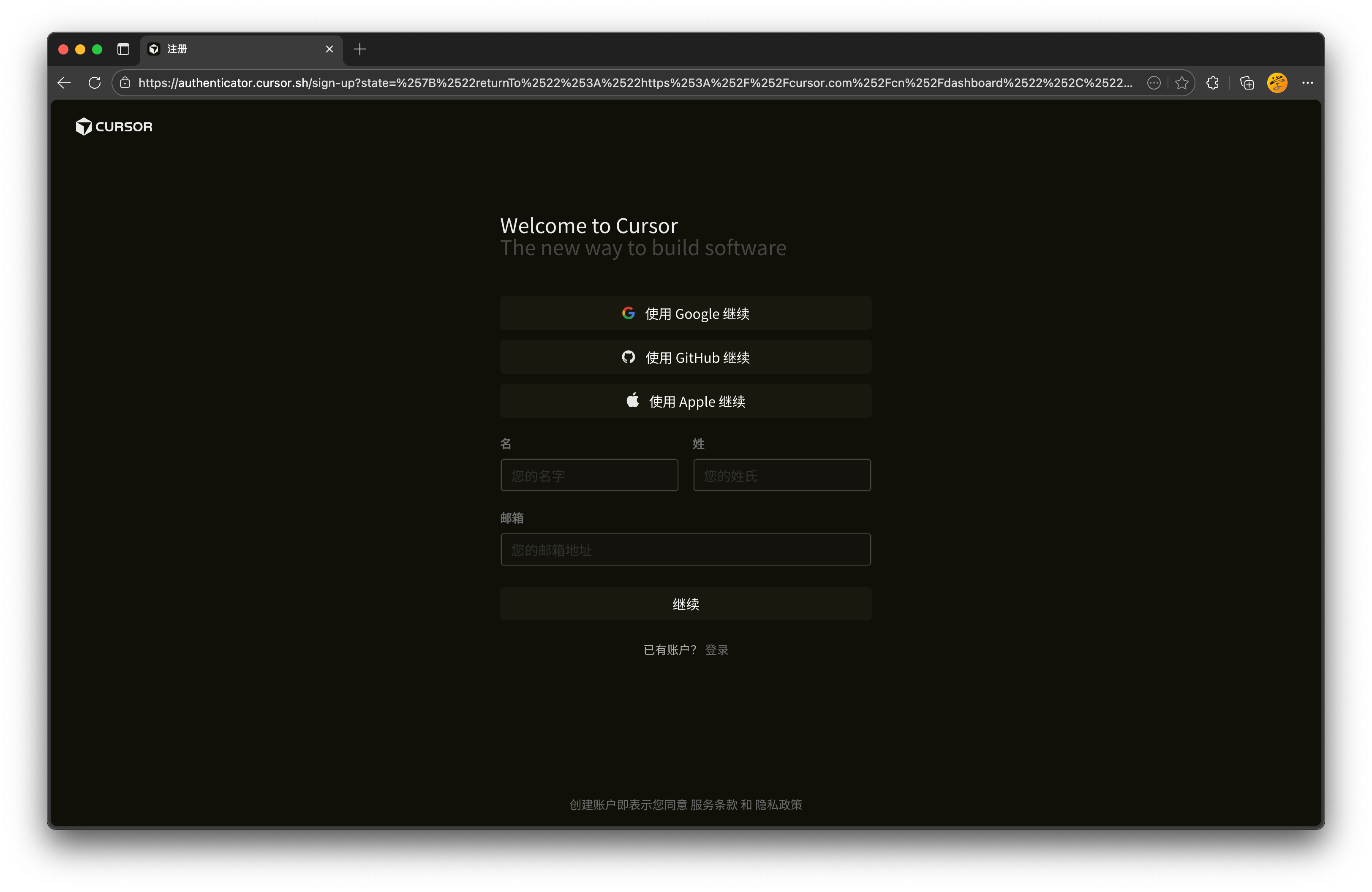从官网下载 Cursor 应用并安装,打开 Cursor 并登录账号