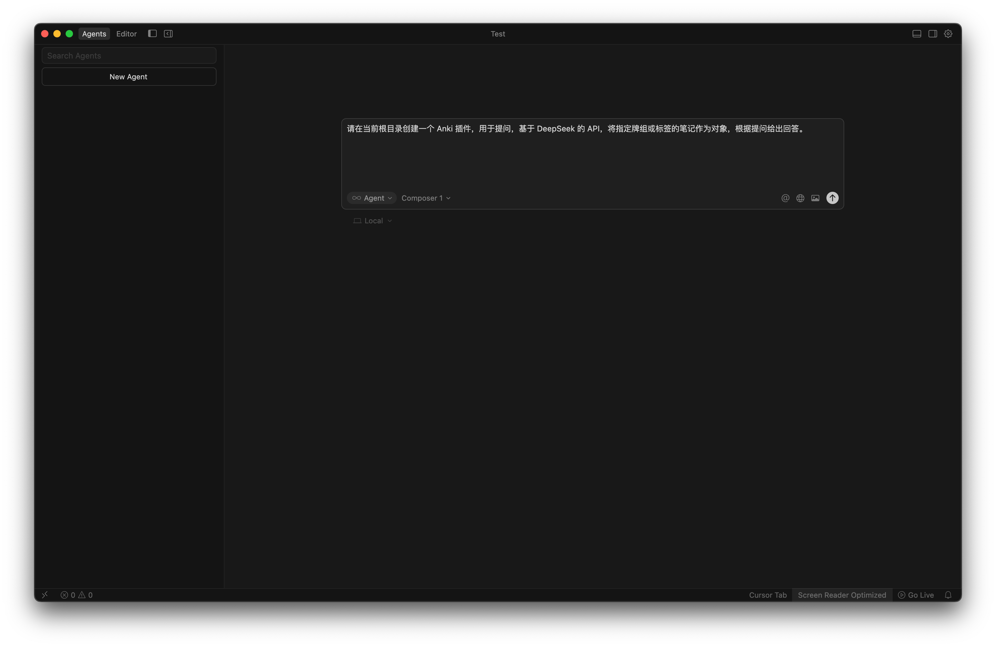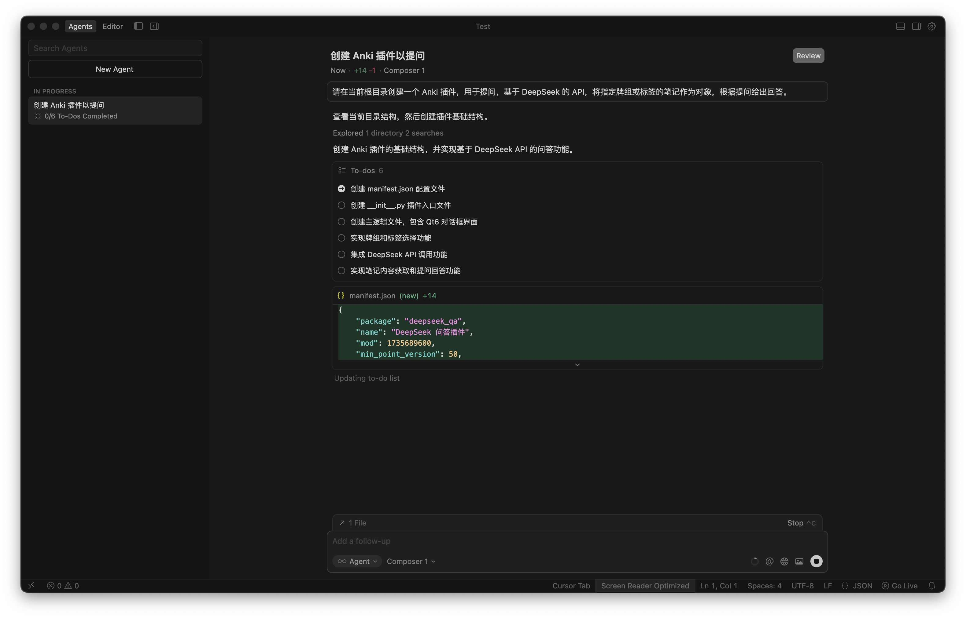然后输入指令“请在当前根目录创建一个 Anki 插件,用于……”,发送。